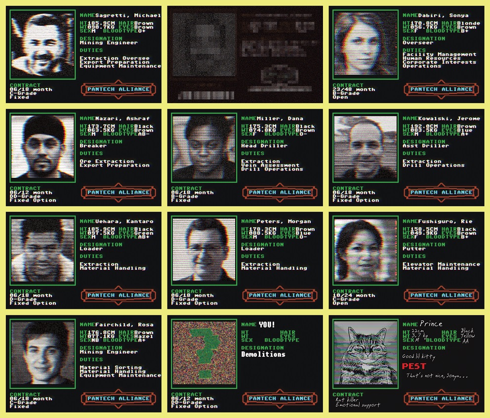 The diary alluded his horrible Sleeper Crew mission on the Blue Planet, his nightmares, the eventual calm he gained working on Y14, and his affair with Rie. (Following some advice in the Mothership Discord, I made Kantaro and Rie a couple, and Mike the interloper.)